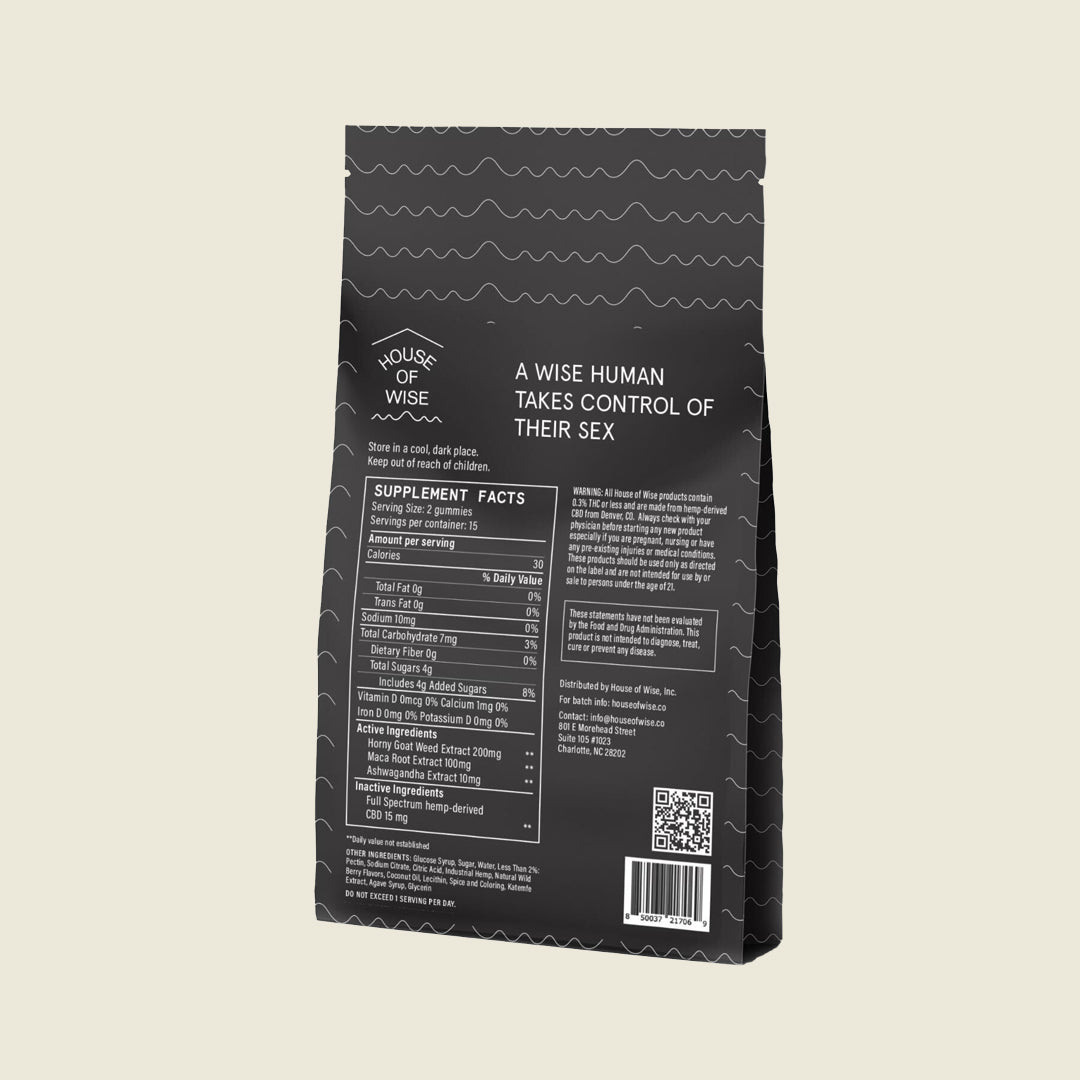 Elevate your intimate experiences with House of Wise Sex Gummies. These delicious gummies are expertly formulated to boost desire, improve blood flow, and increase sensitivity. Each serving contains a potent blend of 200mg of Horny Goat Weed extract, 100mg of Maca Root extract, 10mg of Ashwagandha extract, and 15mg of full-spectrum hemp-derived CBD, crafted to enhance your pleasure.