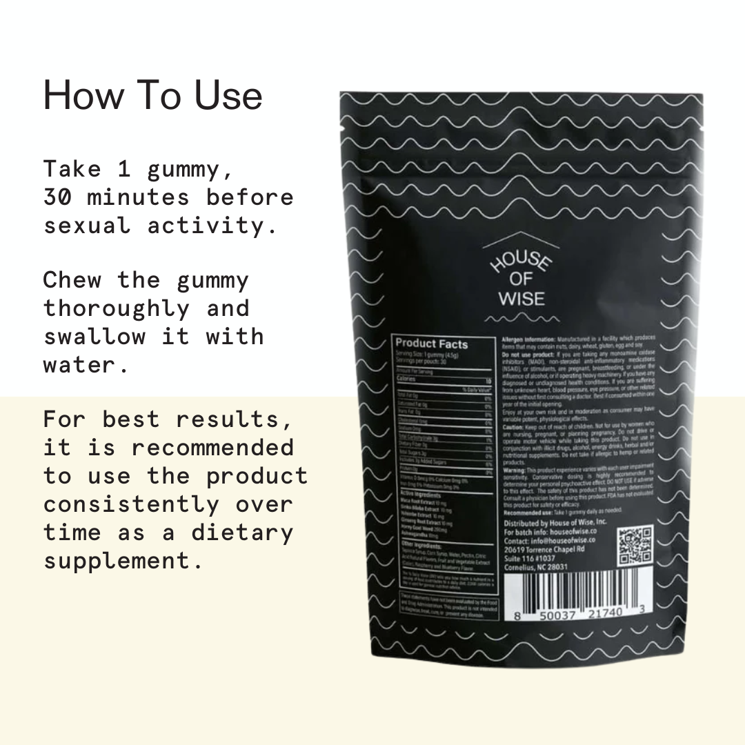Introducing the House of Wise Starter Sex Kit - the ultimate duo for an unforgettable night. Indulge in the powerful benefits of our best-selling Sex Gummies and Daily Libido for a heightened Libido boost.